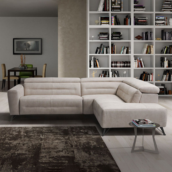 Modern olasz sarokkanapé különleges lábakkal. Rendelhető többféle méretben, valamint 2 vagy 3 személyes kivitelben is, választhatsz tágasabb vagy kompakt méretű verziók közül.